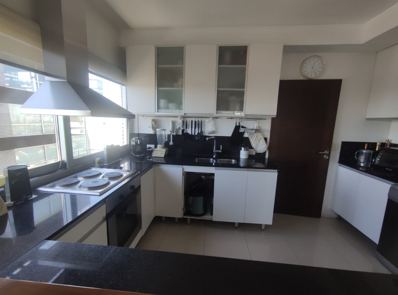 Para destacar: piso de roble, grifería de alta gama, cortinas dobles automatizadas con control remoto, Riel Americano, calefacción central por losa radiante, 4 equipos de aire acondicionado. Todo el departamento con luminarias de diseño. Piso porcelanato en cocina y área de servicio. Aberturas de aluminio con vidrio VDH. Para destacar: 2 muebles para TV con soporte oculto automatizado con control remoto.