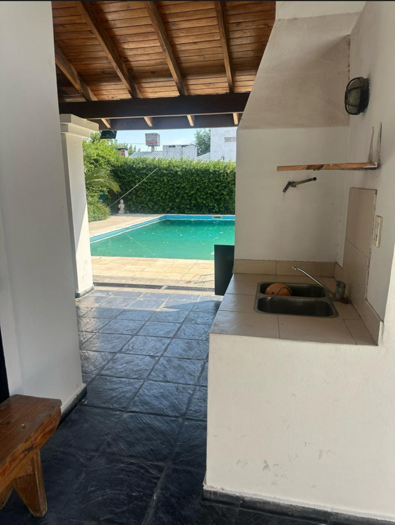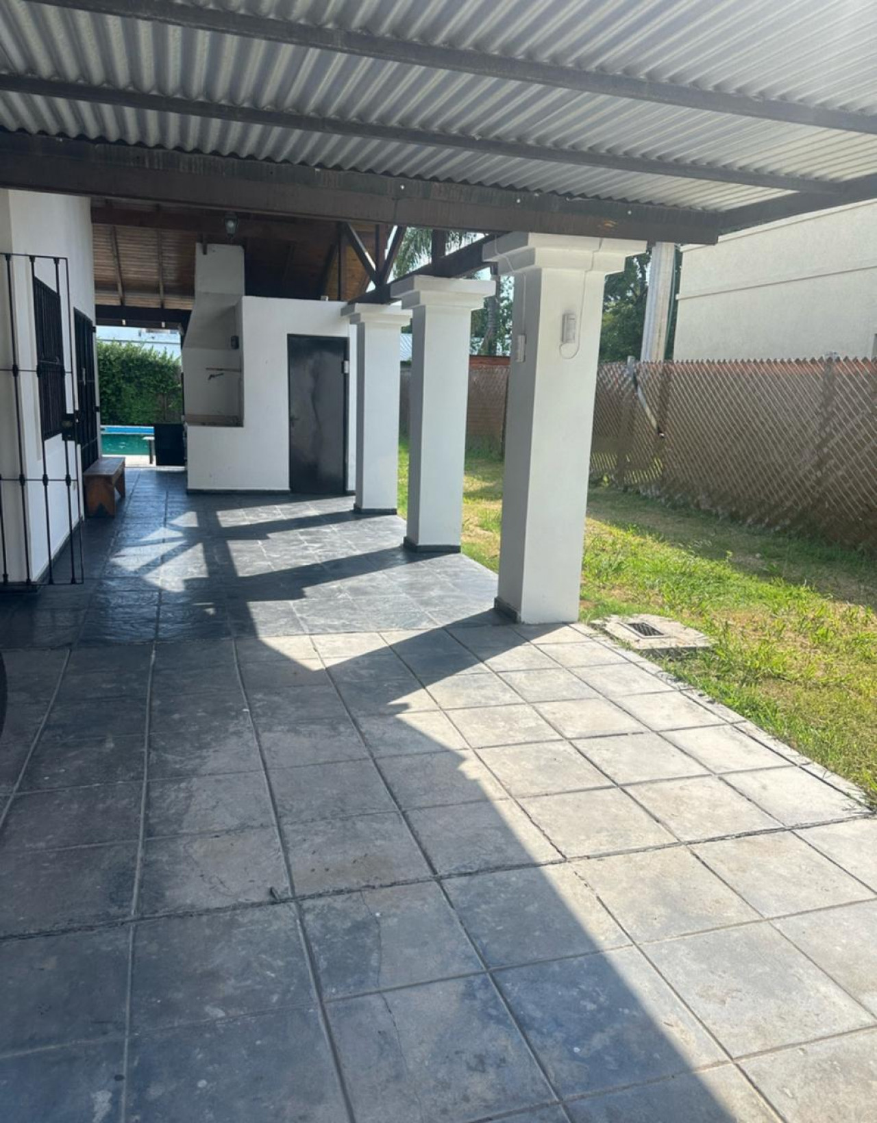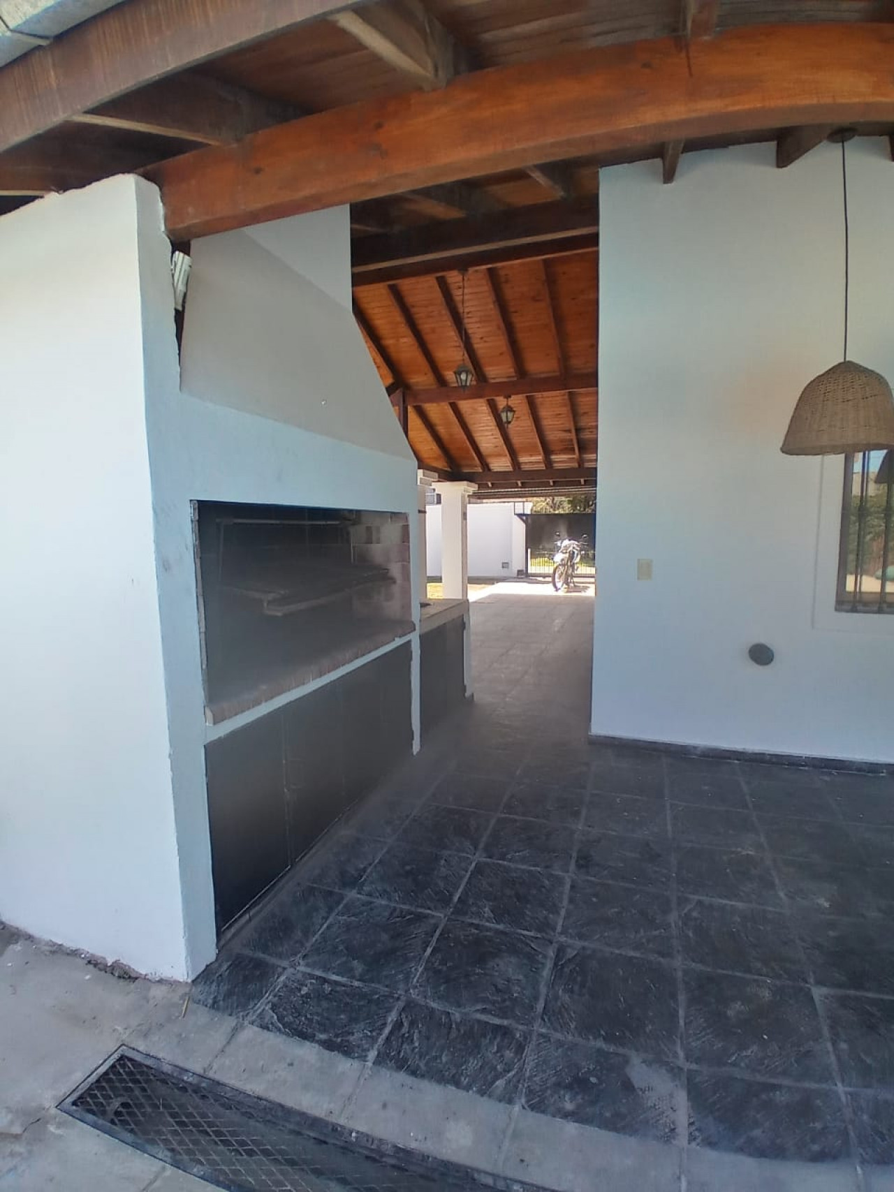 Galería con parrilla ideal para reuniones en el exterior