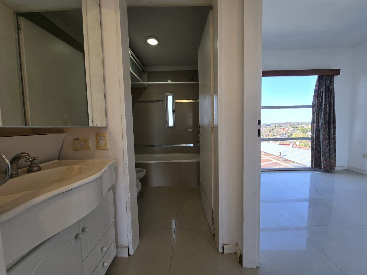 Esta distribuido por un living comedor con salida al balcón, cocina separada amoblada con mesada, bajo mesada y alacena, ante baño con su respectivo mueble y grifería funcional, baño completo con sanitario, bidet, y bañera. La habitacion amplia con mueble empotrado con su interior y dos hojas con espejo.