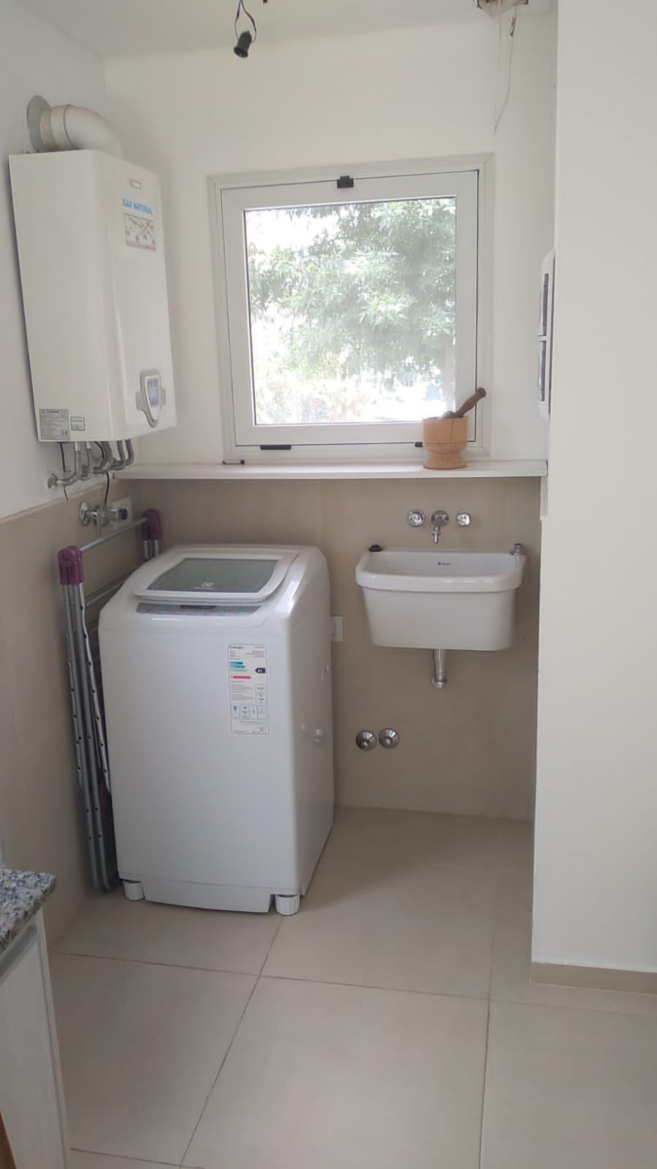 Cocina integrada con comedor diario y lavadero.